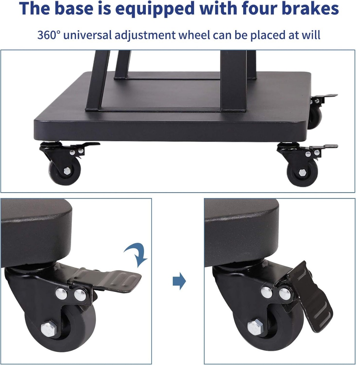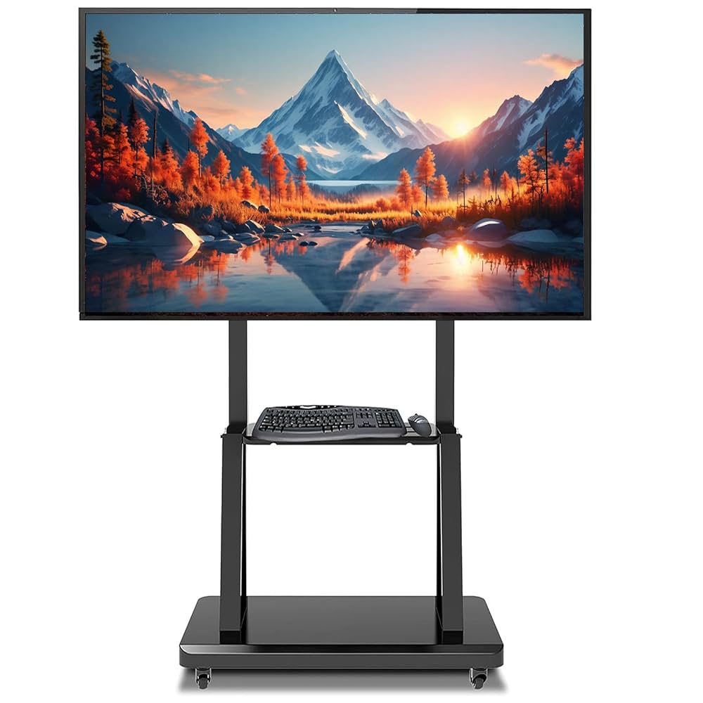 Support TV multimédia sur roulettes, ultra-robuste et à hauteur réglable
